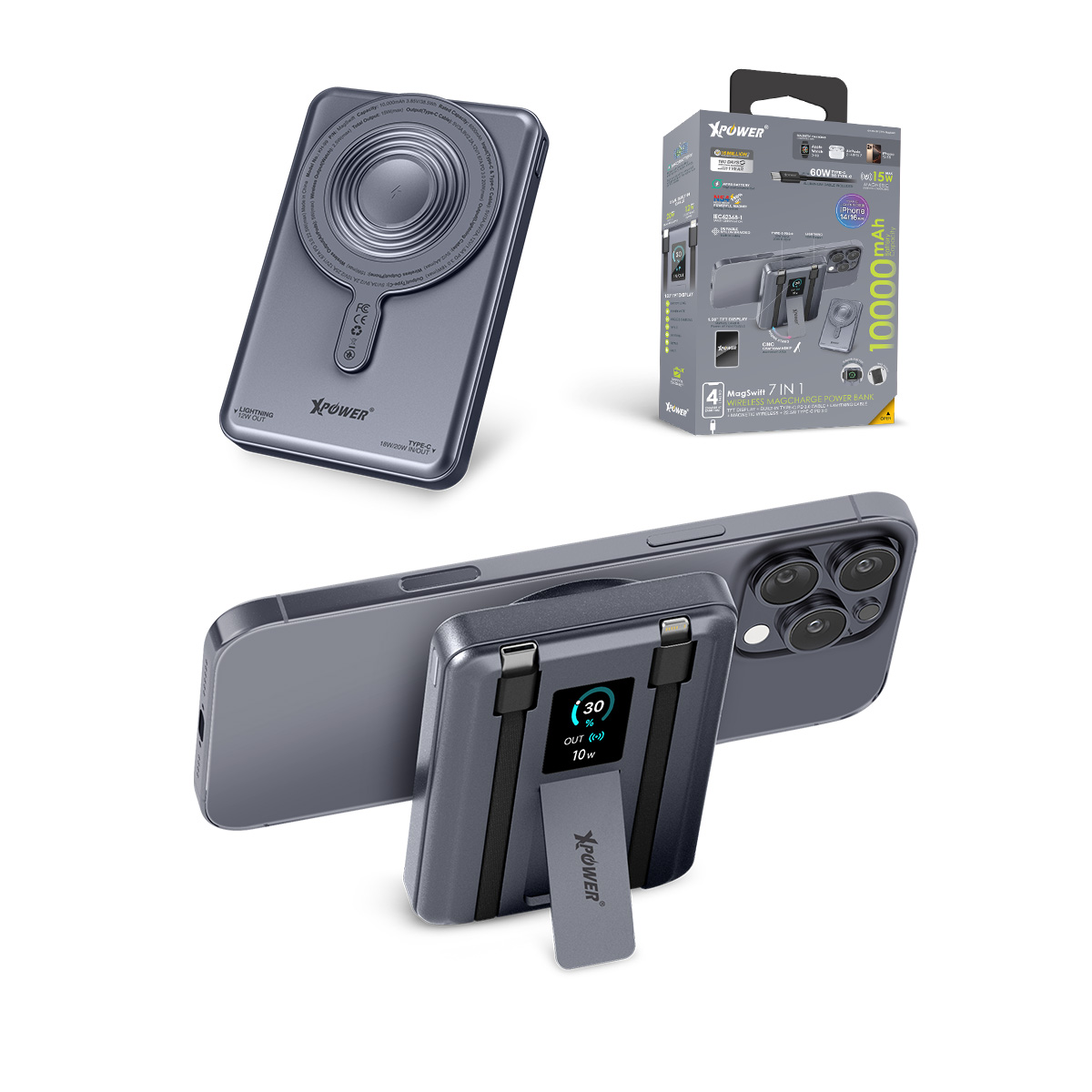 MagSwift 7合1 多功能數顯10000mAh Type-C PD / Lightning 雙內置線+磁吸PD3.0無線移動電源