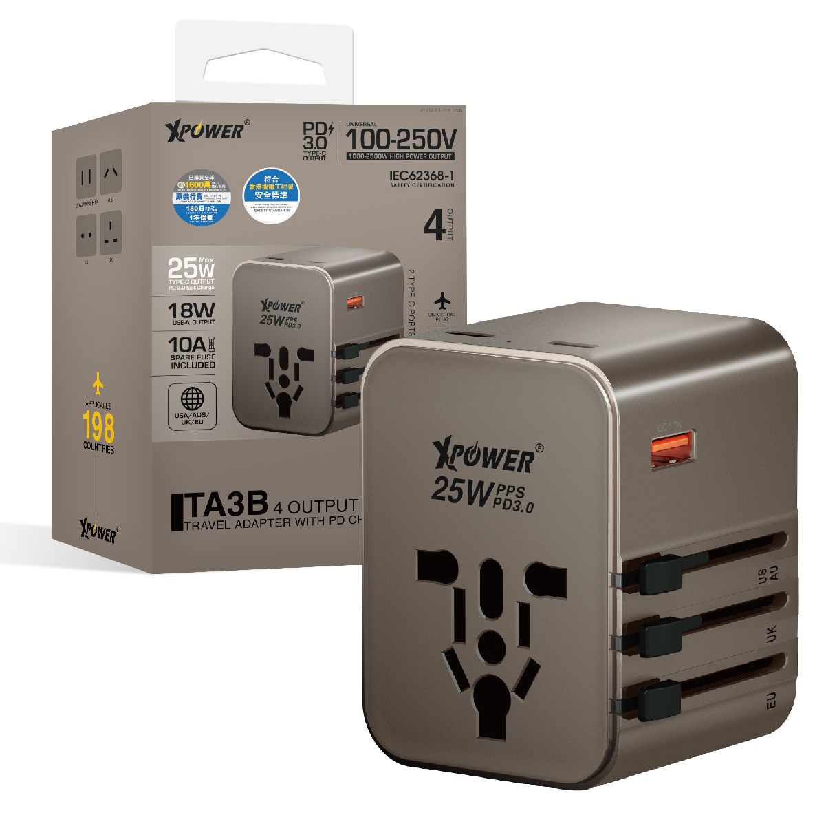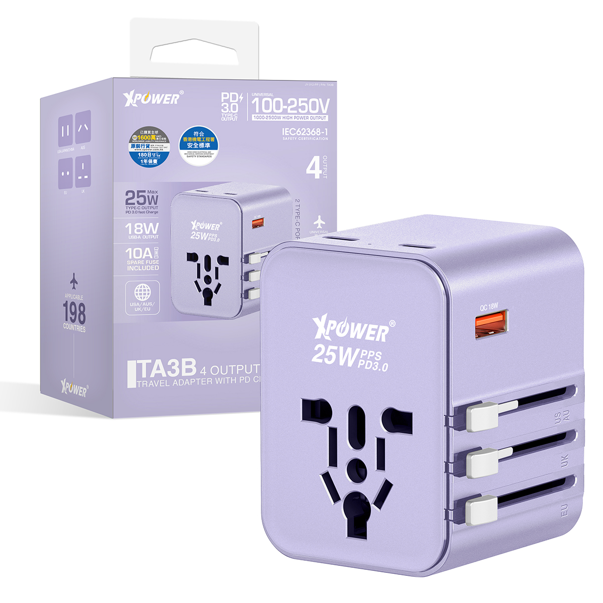 TA3B 25W 4輸出PD 3.0/PPS旅行充電器