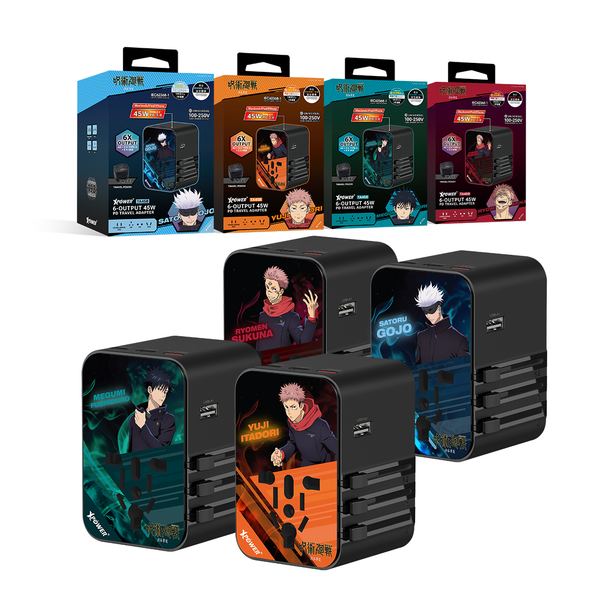 咒術迴戰 6輸出 45W PD/PPS GaN旅行充電器 TA45B