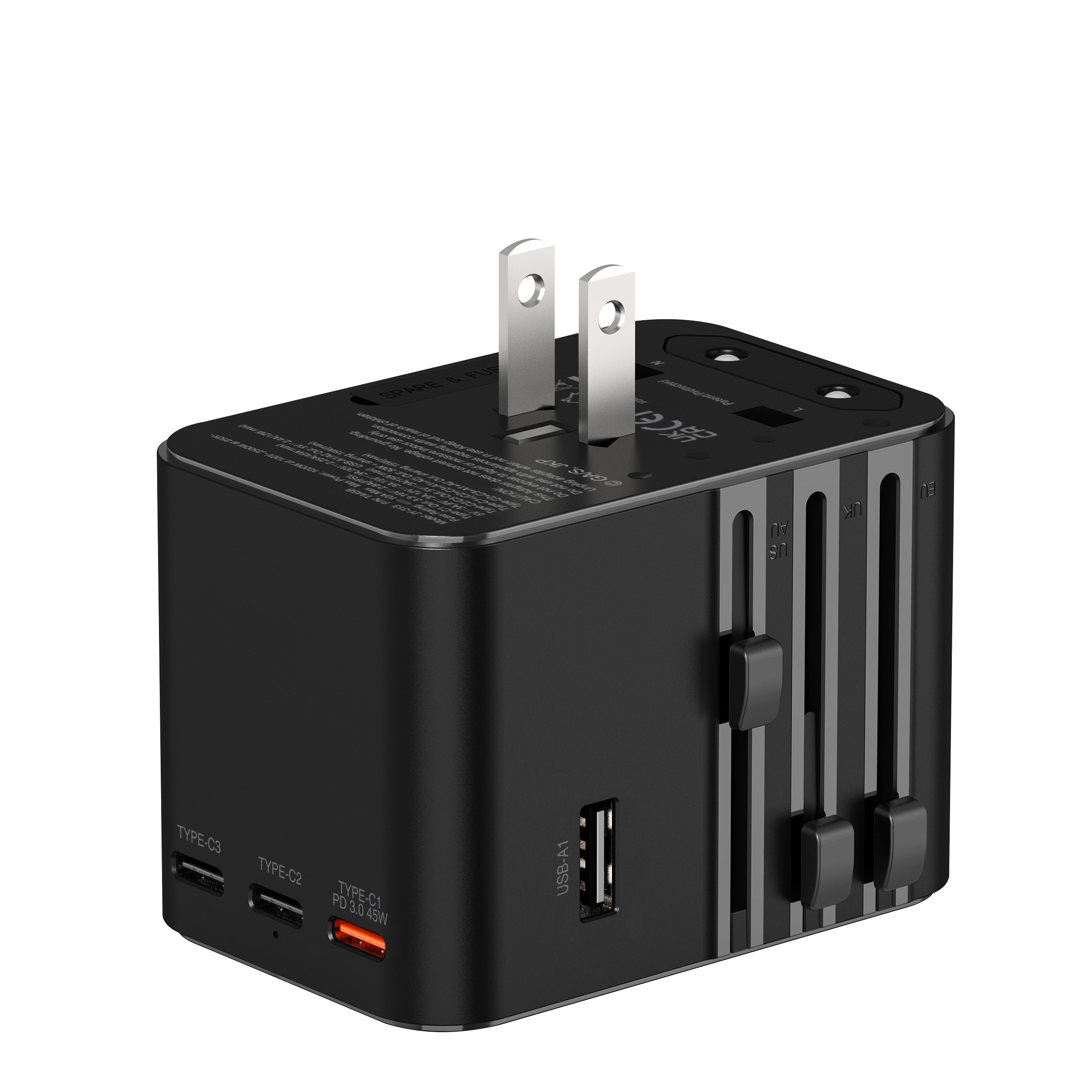•4種旅行插頭 [UK/AU/EU/US],支援環球超過198個國家地區