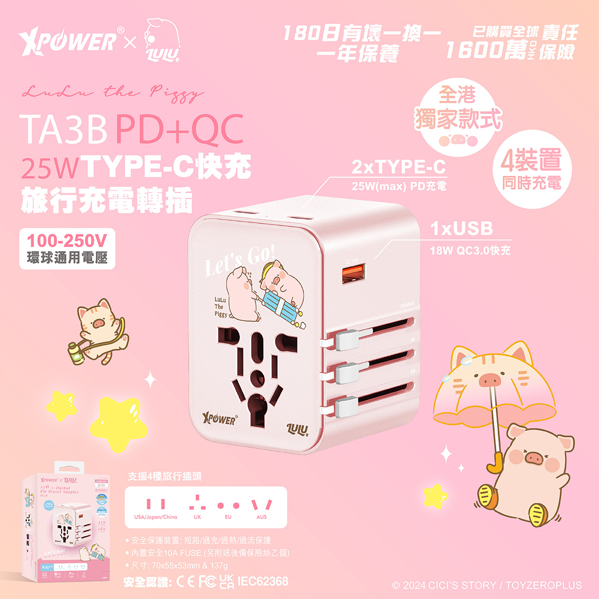 LuLu the Piggy TA3B 25W TYPE-C快充旅行充電轉插