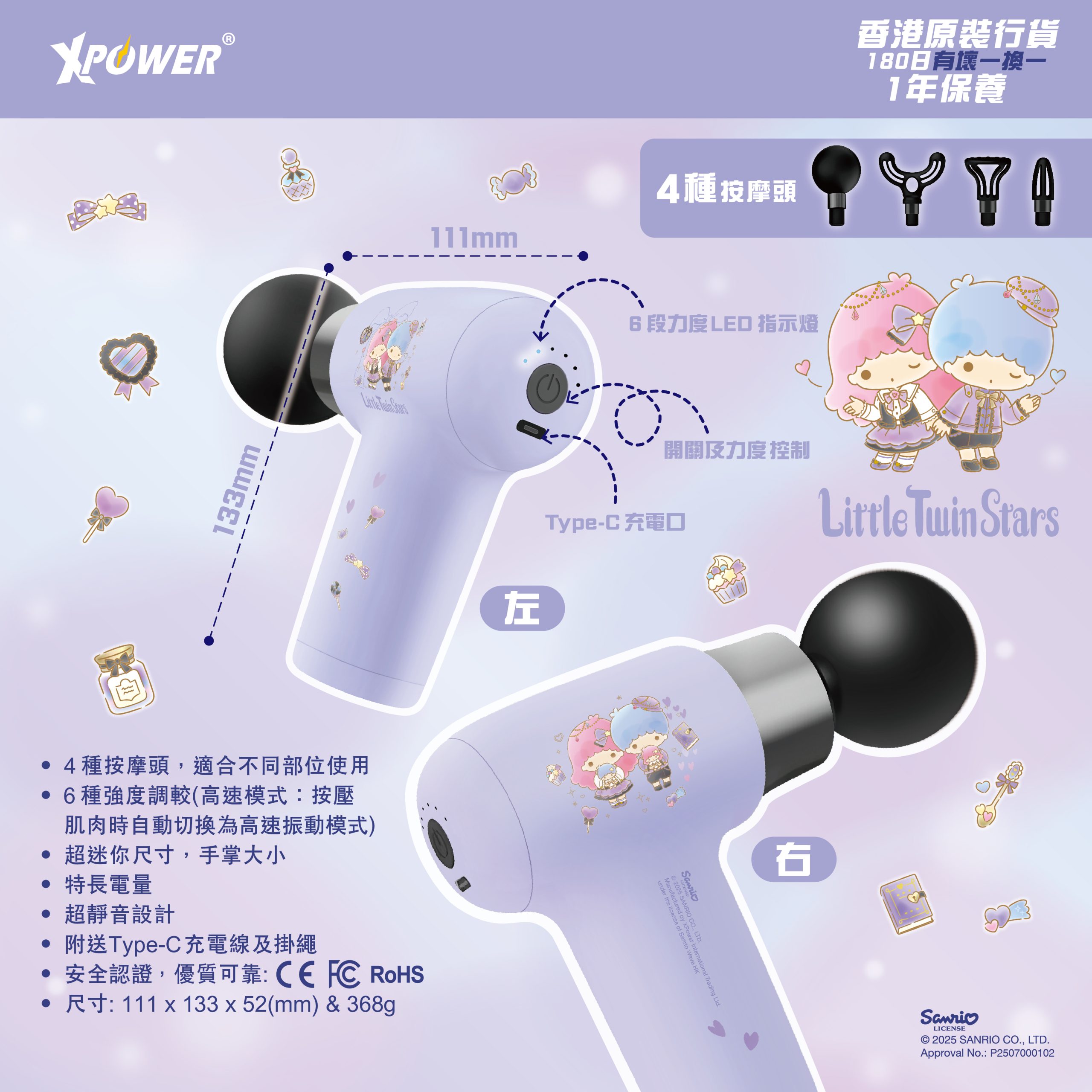 XPower x Sanrio MG19 LittleTwinStars 超迷你肌肉按摩槍