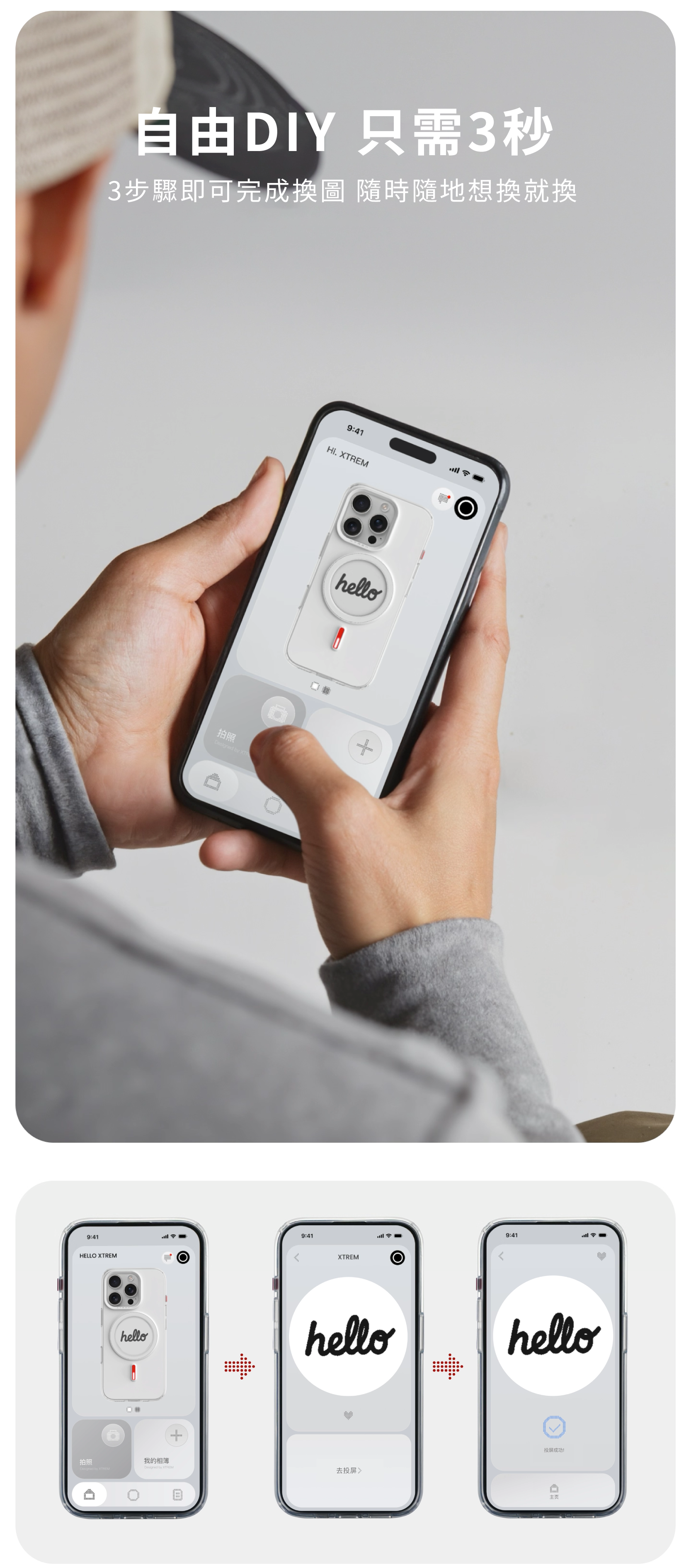 XTREM 搭載E Ink彩色電子紙螢幕,以212 dpi 的高像素密度呈現照片內容,確保色彩層次豐富、影像銳利,即使在烈日暴曬下也能清晰可見。所有圖案和照片都能以高品質呈現,立體感十足。透過NFC技術與APP的配合,無論是明星寫真、寵物萌照或有趣表情包,都能輕鬆轉換成手機殼上的圖像。最棒的是,無須插電或充電即可運作,隨時想更換圖片就能更換,讓手機殼的變化如同心情轉換般迅速!