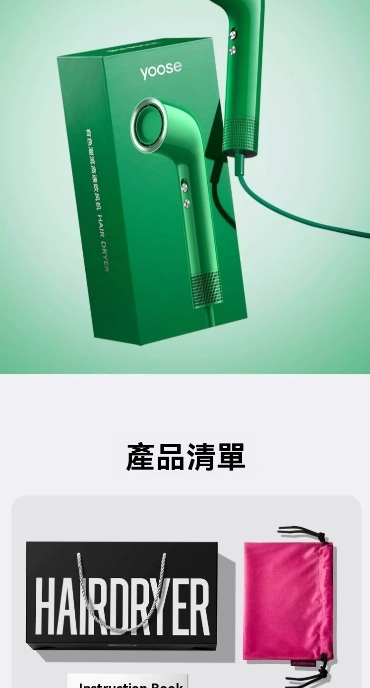 搶先留言 “yoose S2 空氣動力學高速吹風機 (品牌直送)”