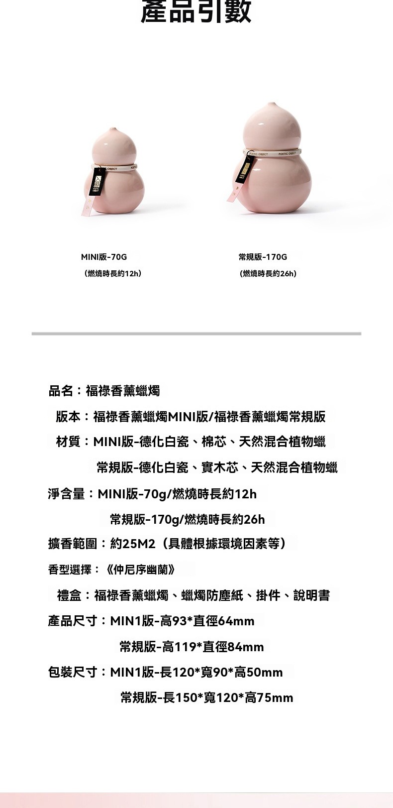 福祿香薰蠟燭-粉色版-大號, 福祿香薰蠟燭-粉色版-小號