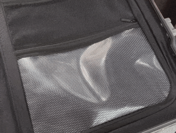 ZERO 內層採用環保回收布料,設有多口袋收納層與防水隔層,護膚品、衣物、文件均可分門別類。箱內兩側以對稱網袋取代傳統 X 束帶,更能保障個人物品私隱,避免開箱時尷尬掉落。